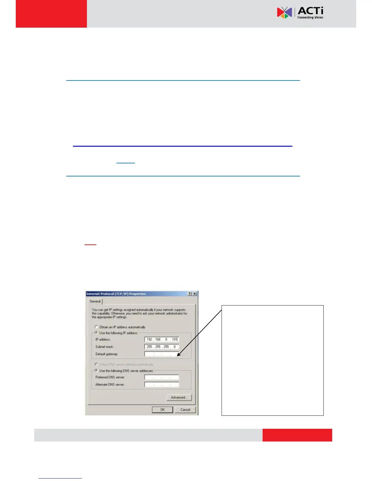 1. Configure your PC to use the same subnet by changing your PC’s IP address to the