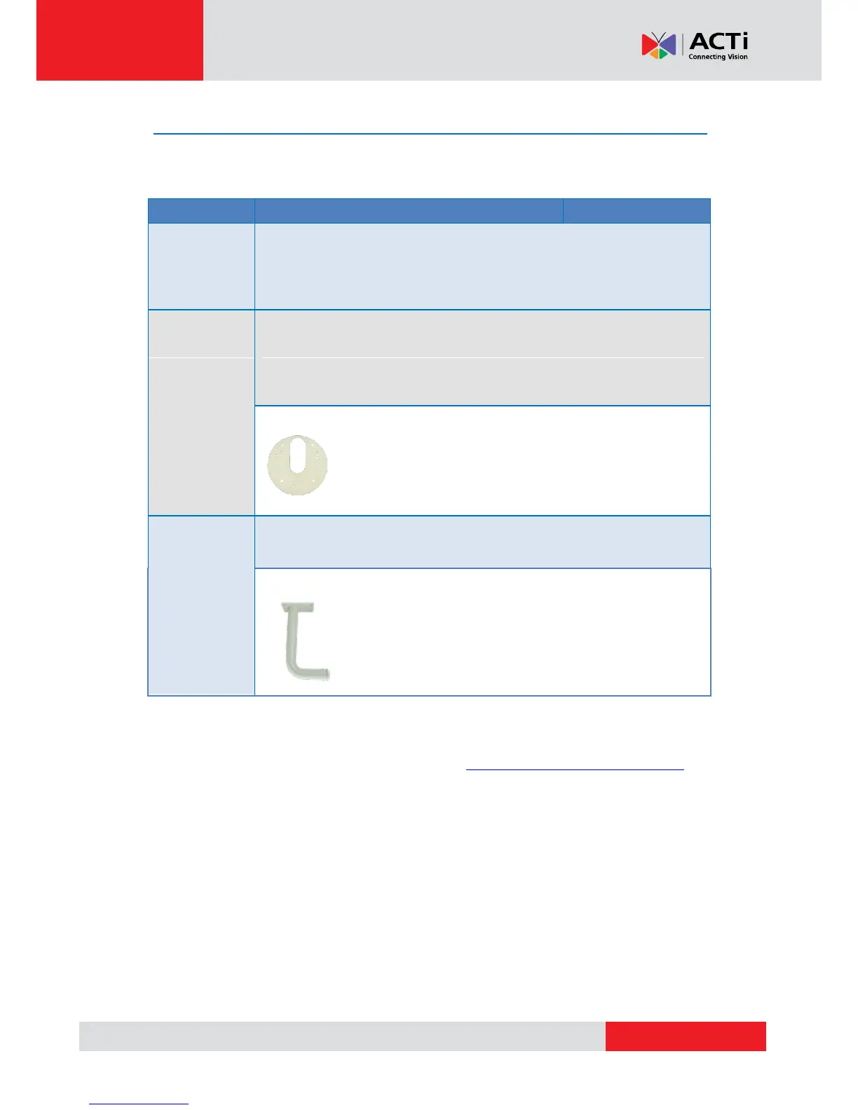 Mounting Accessory Selector in our website (http://www.acti.com/mountingselector).