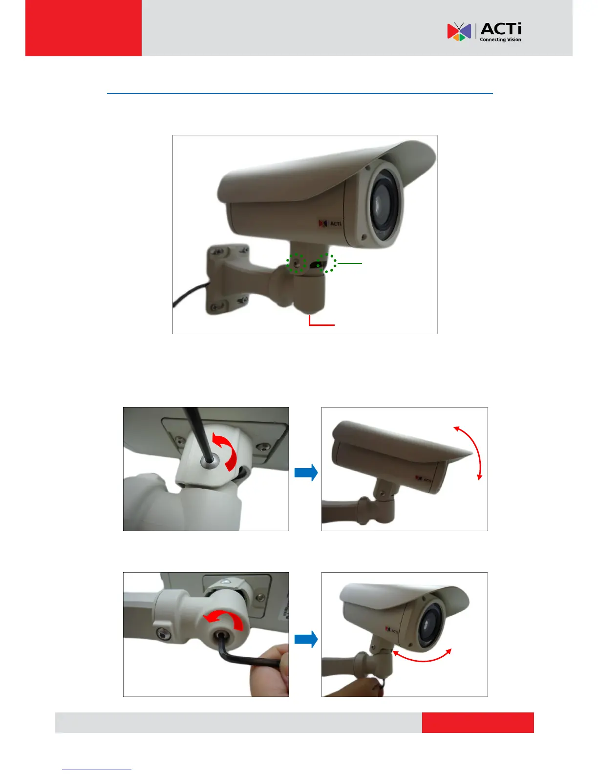 2. Loosen the pan adjustment screw, move the pan direction, and then tighten back the screw