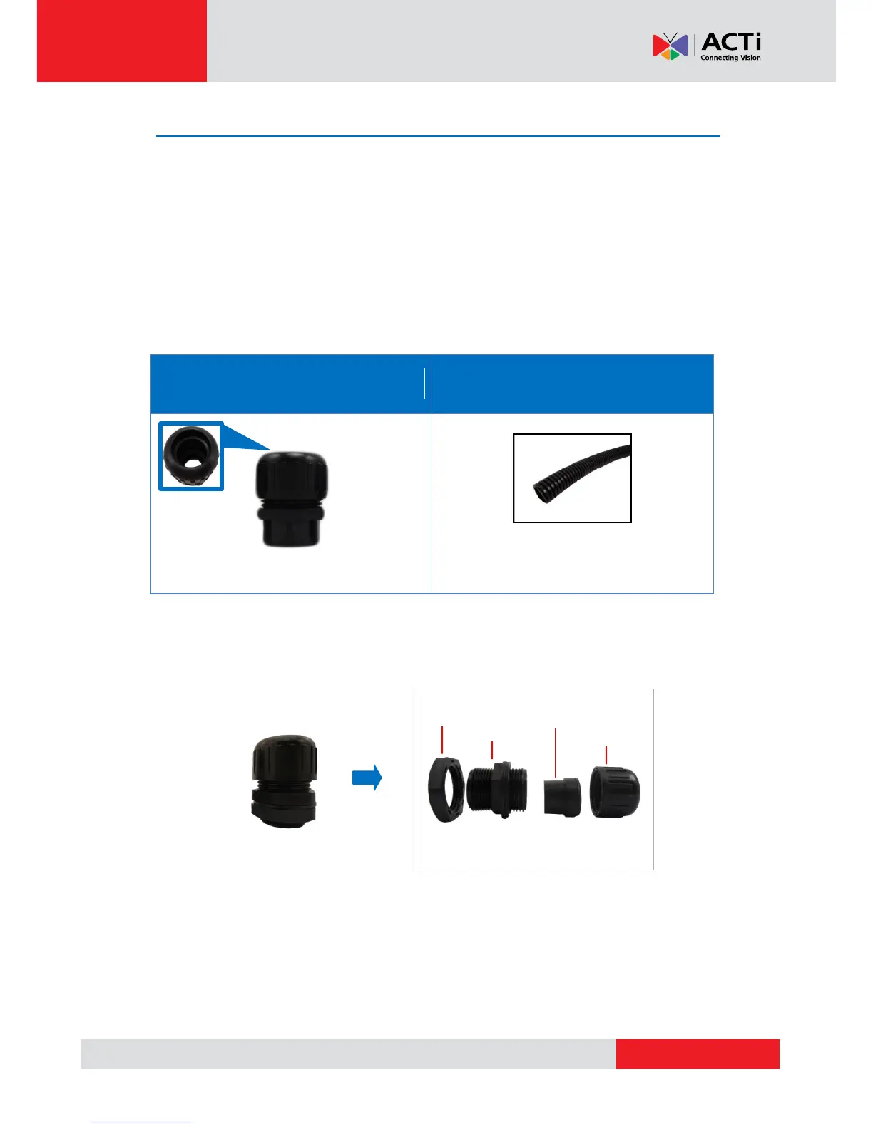 This section describes how to waterproof the cable(s) using the bundled male conduit gland and