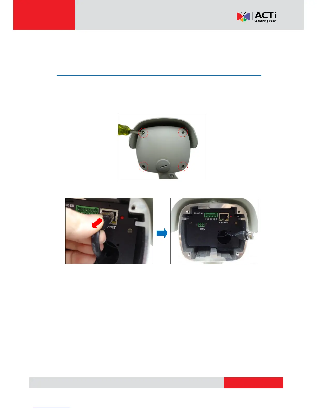1. Loosen the four (4) screws to remove the back cover of the camera.