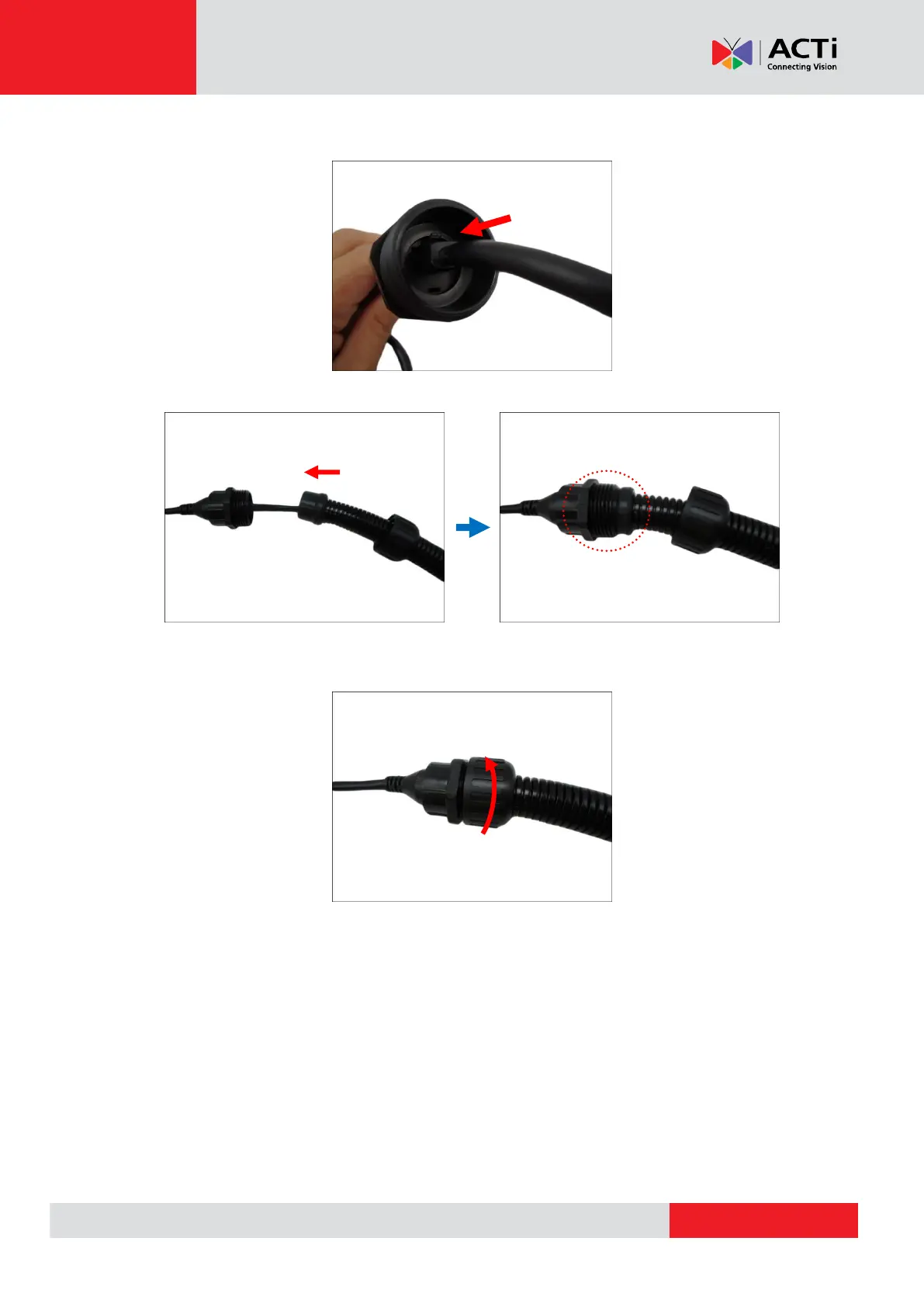 7. Connect the Ethernet connector to the Ethernet port of the camera.