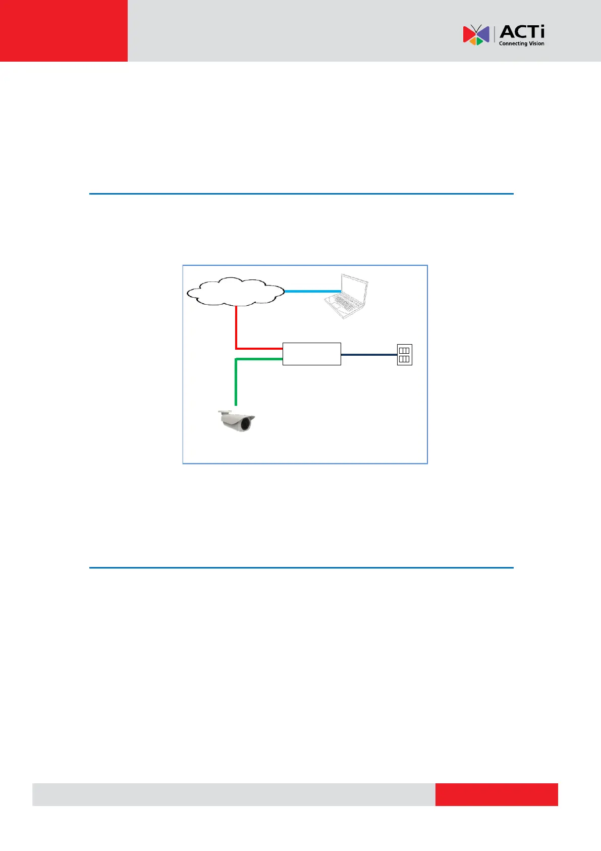 In case of using a non-PoE switch, power up the camera using a power adapter (not supplied).