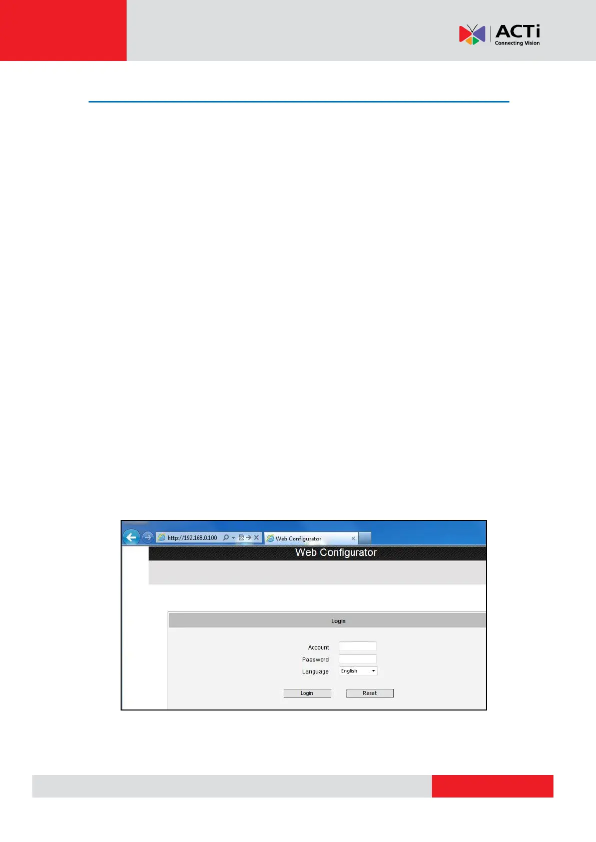 same network segment, it is possible to use the Web browser of the PC to access the camera.
