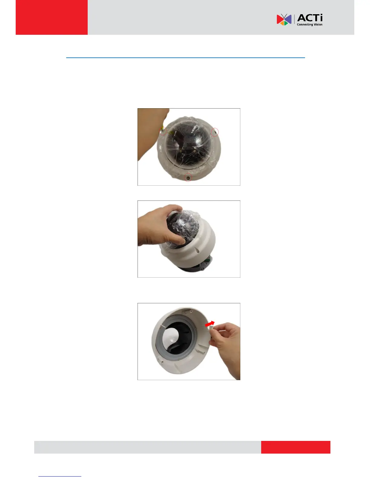 1. With the bundled hex screwdriver, loosen the three (3) screws securing the dome cover.