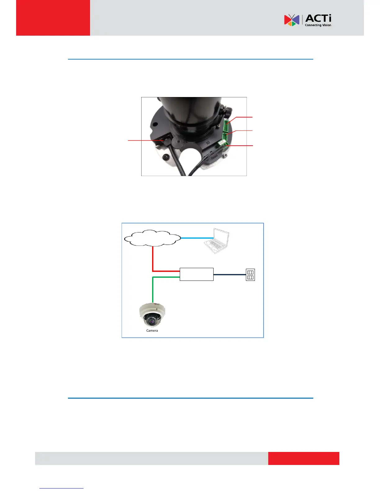 In case of using a non-PoE switch, power up the camera using a power adapter (not supplied).