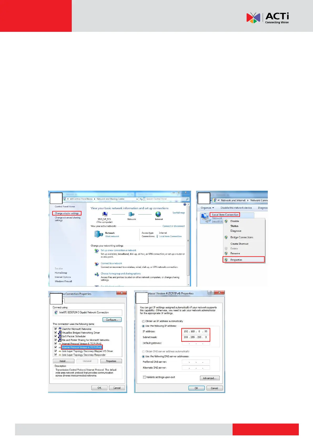 192.168.0.99 and set Subnet Mask to 255.255.255.0 by using the steps below: