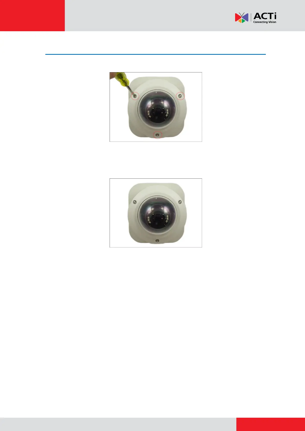 1. Tighten the three (3) screws to attach the dome cover to the camera body.