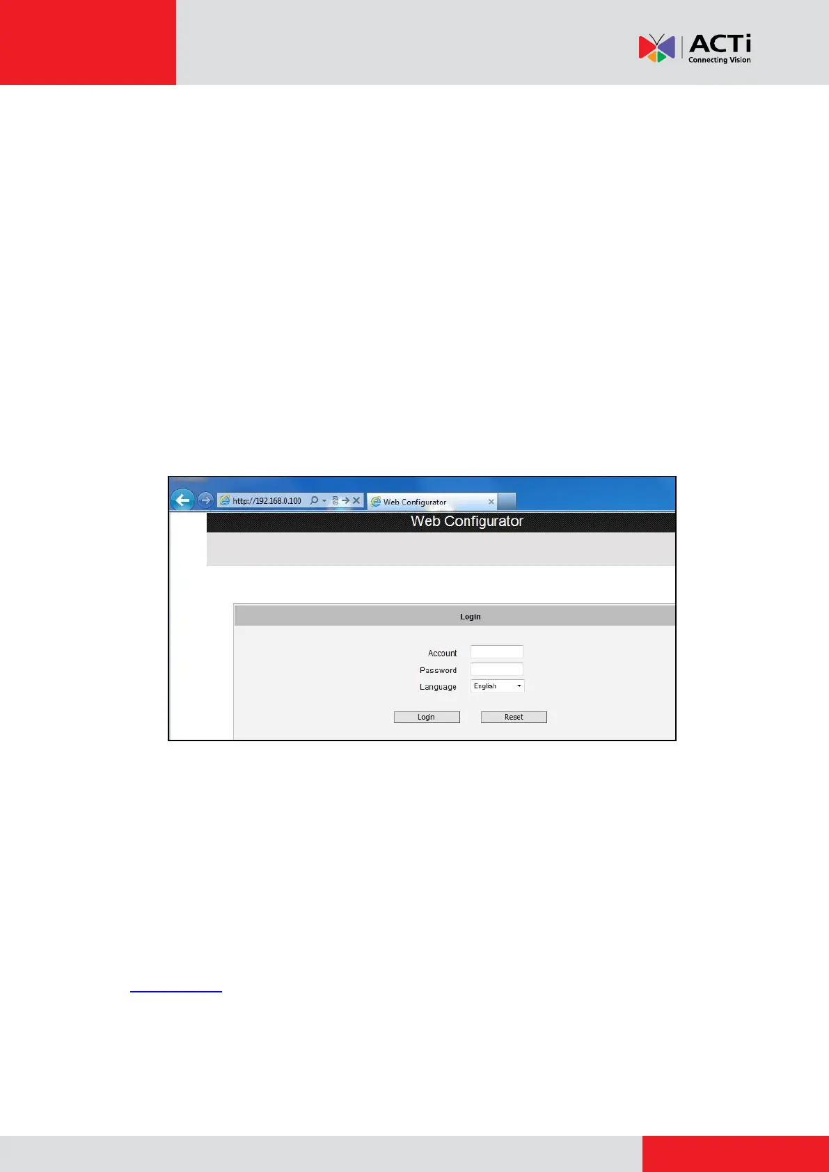 Before logging in, you need to know the factory default Account and Password of the camera.