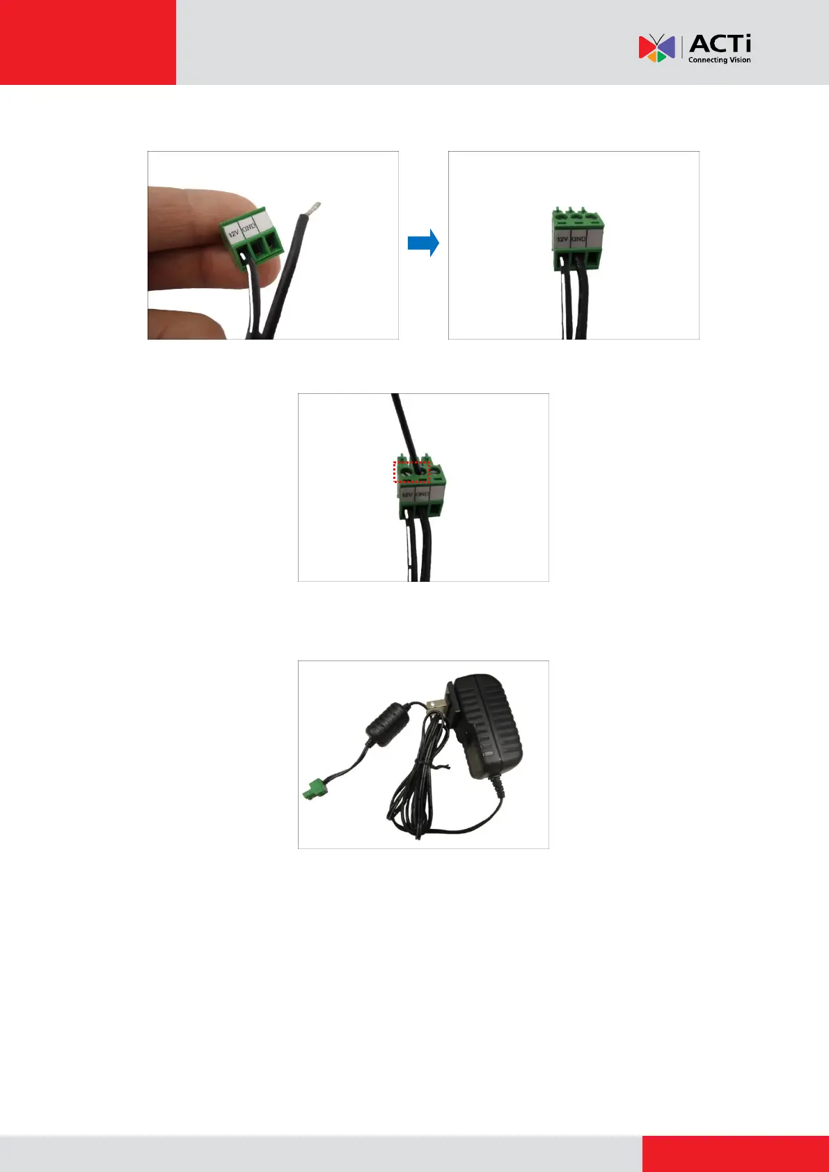 4. Tighten the screws of the 12V pin and the GND pins to secure the wire connection.