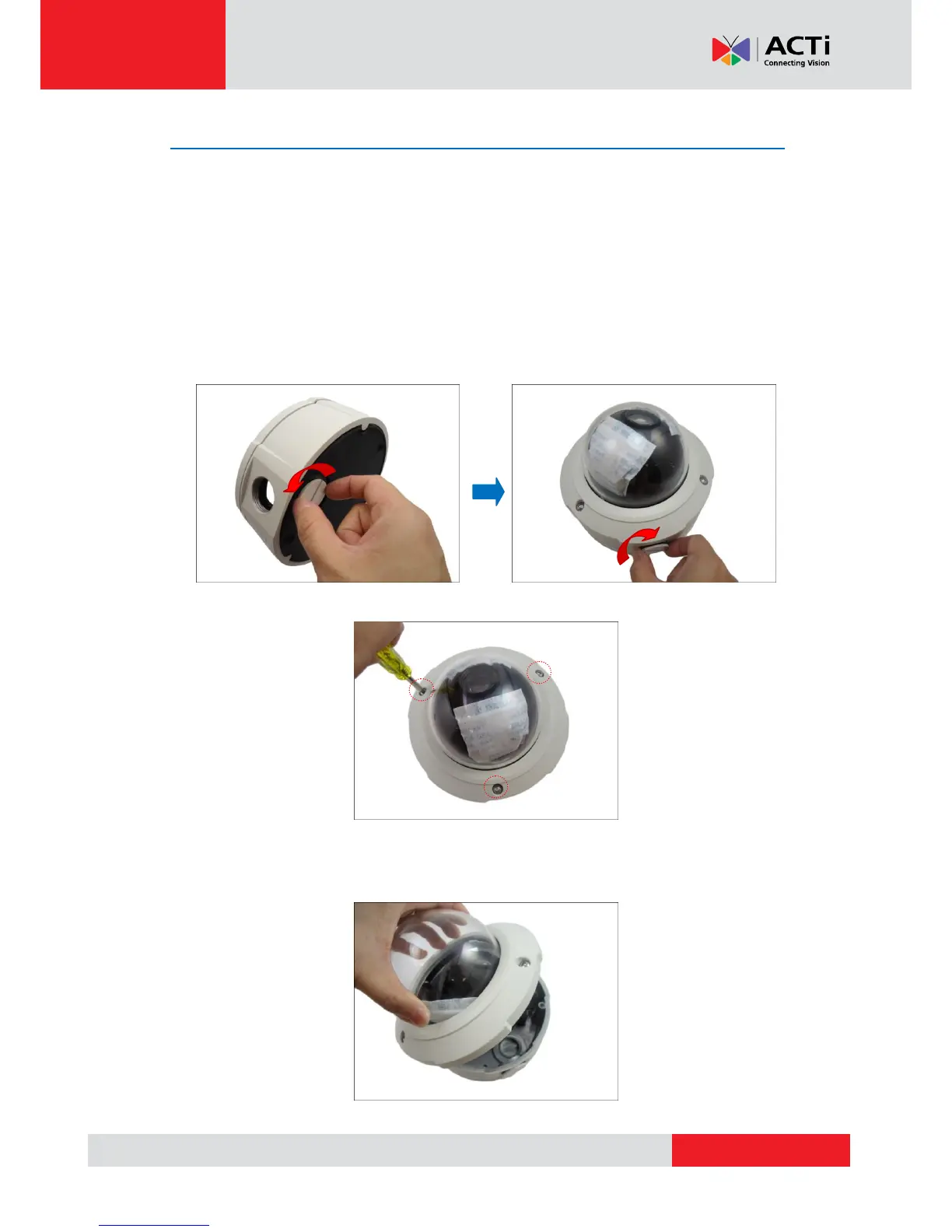 3. Carefully lift to open the dome cover and place it on the side of the camera.
