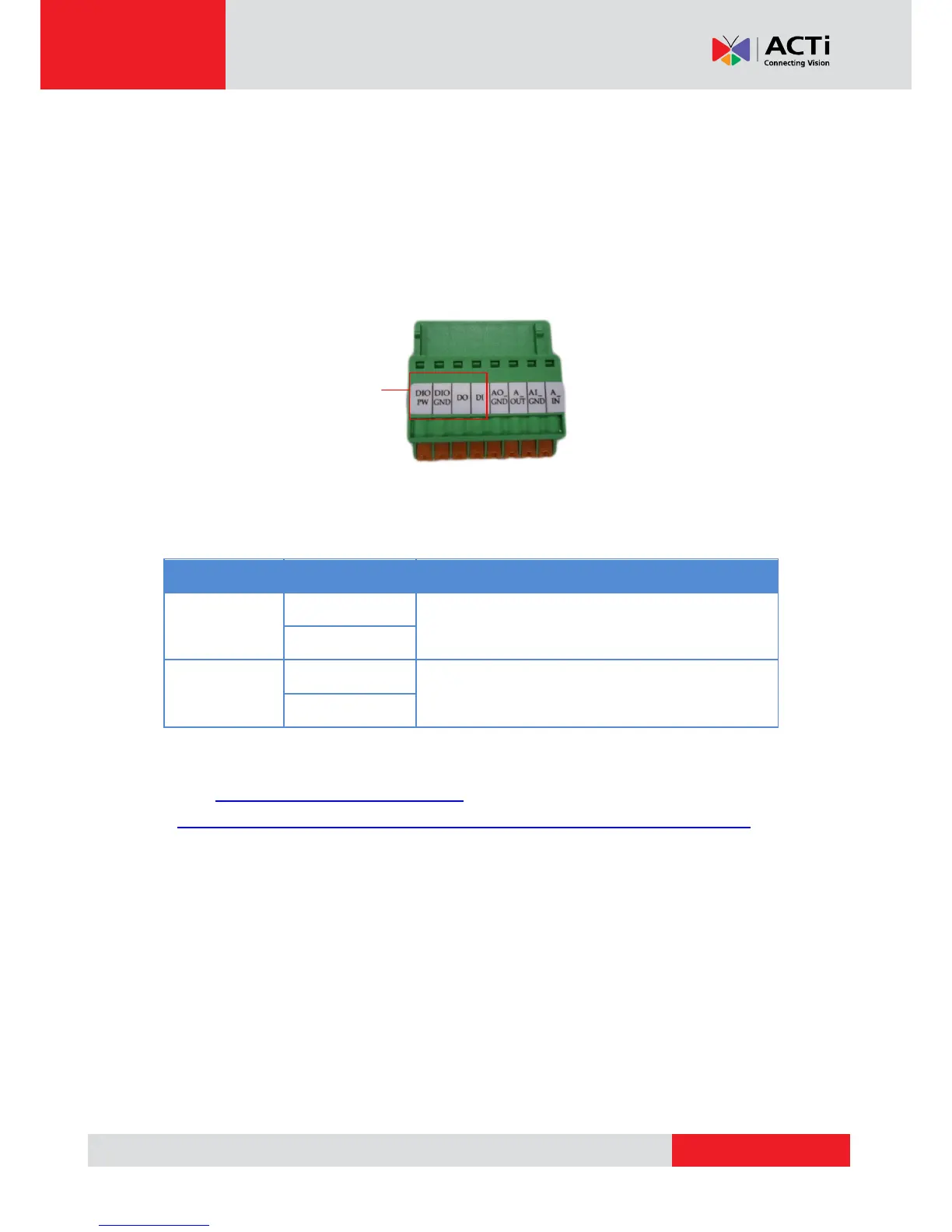 article How to Use Audio-in of ACTi Cameras, downloadable from the link below