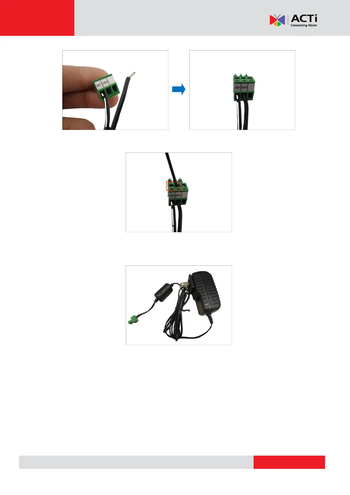 4. Tighten the screws of the 12V pin and the GND pins to secure the wire connection.