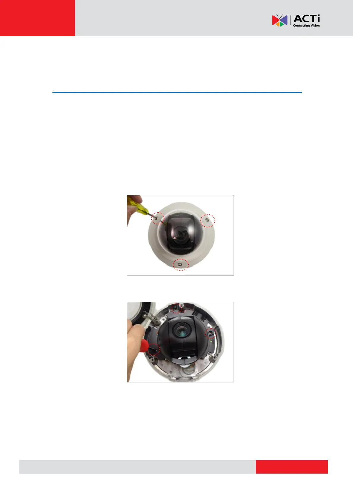 1. Using the bundled hex screwdriver, loosen the three (3) screws to open the dome cover.
