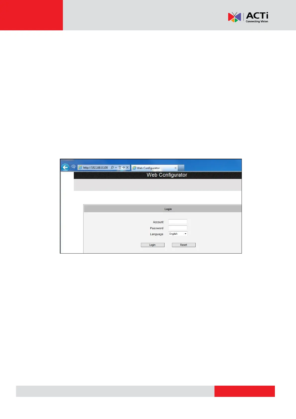Assuming that the camera’s IP address is 192.168.0.100, you can access it by opening the Web