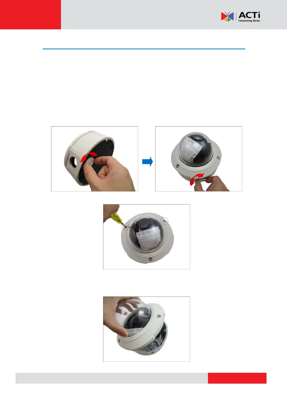 3. Carefully lift to open the dome cover and place it on the side of the camera.