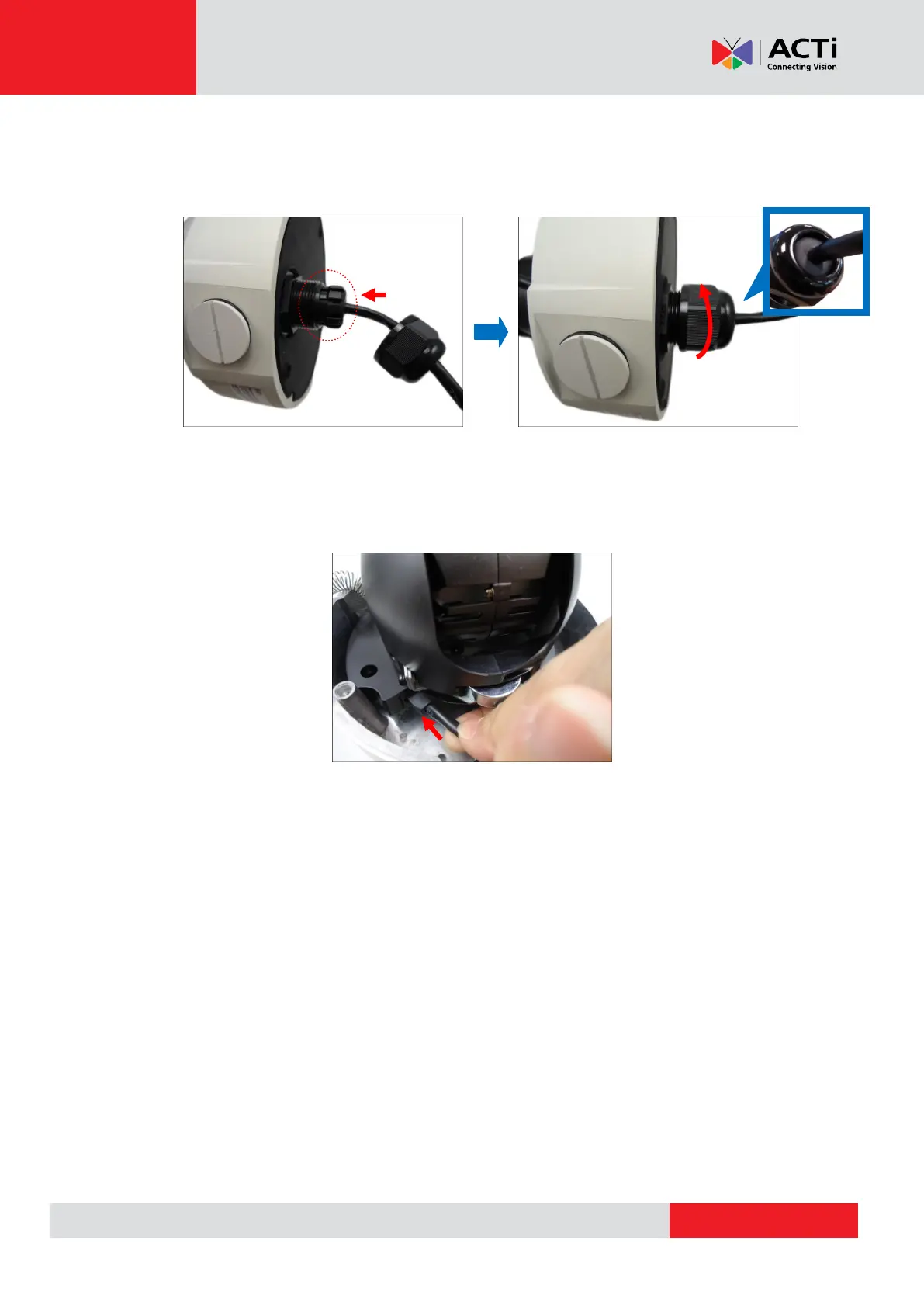 7. Connect the network cable to the Ethernet port of the camera.