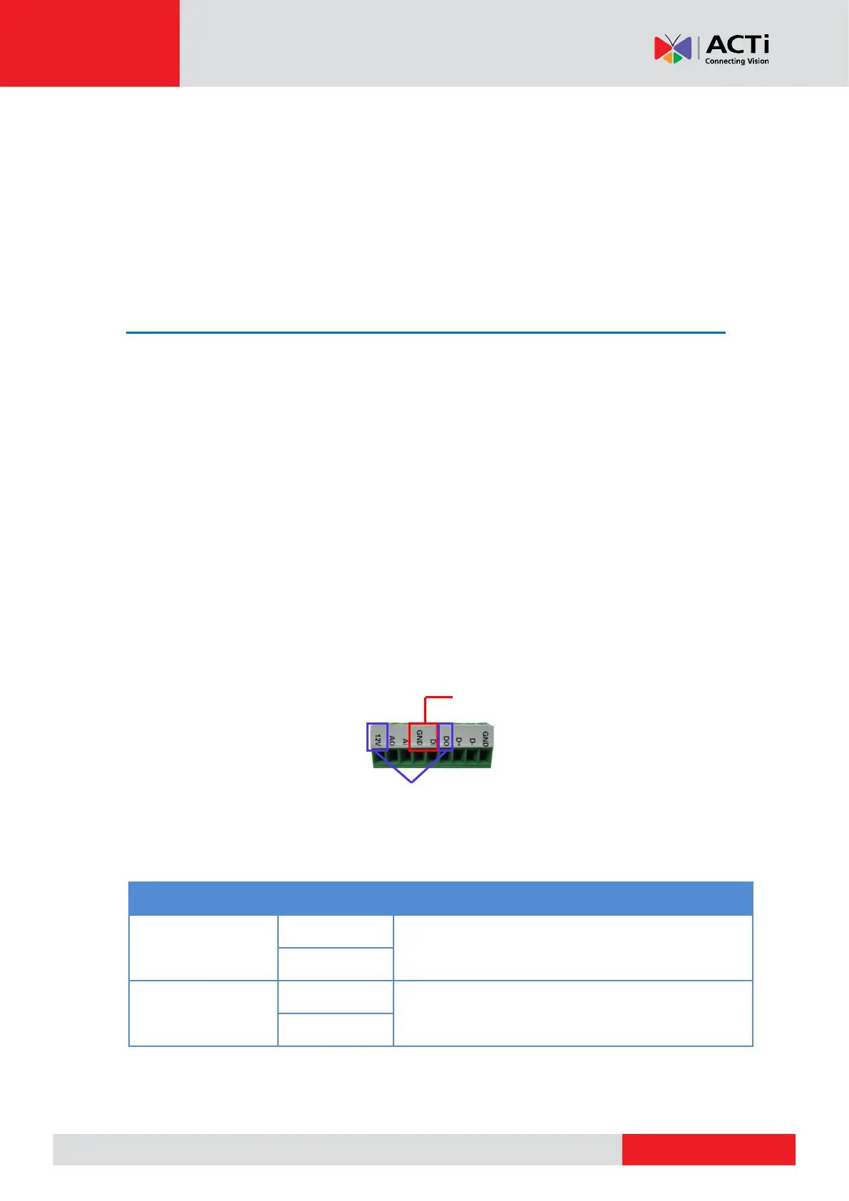 the camera. The camera supports Digital Input and Output (DI/DO), Audio Input and Output