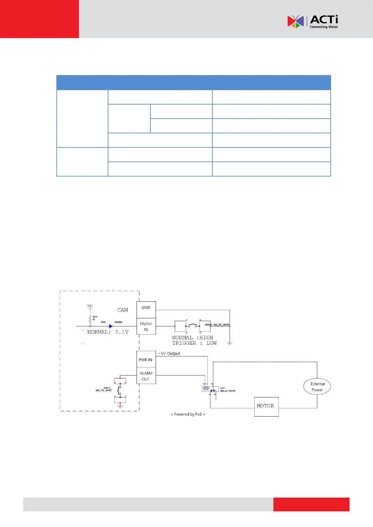 voltage of < 24V (< 100mA), then the camera can supply internal power to these devices and