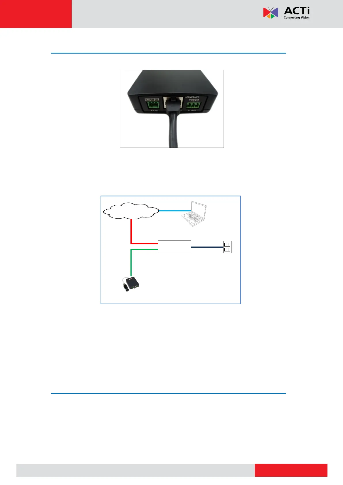 network or PC and a power source. See Power-over-Ethernet (PoE) example connection