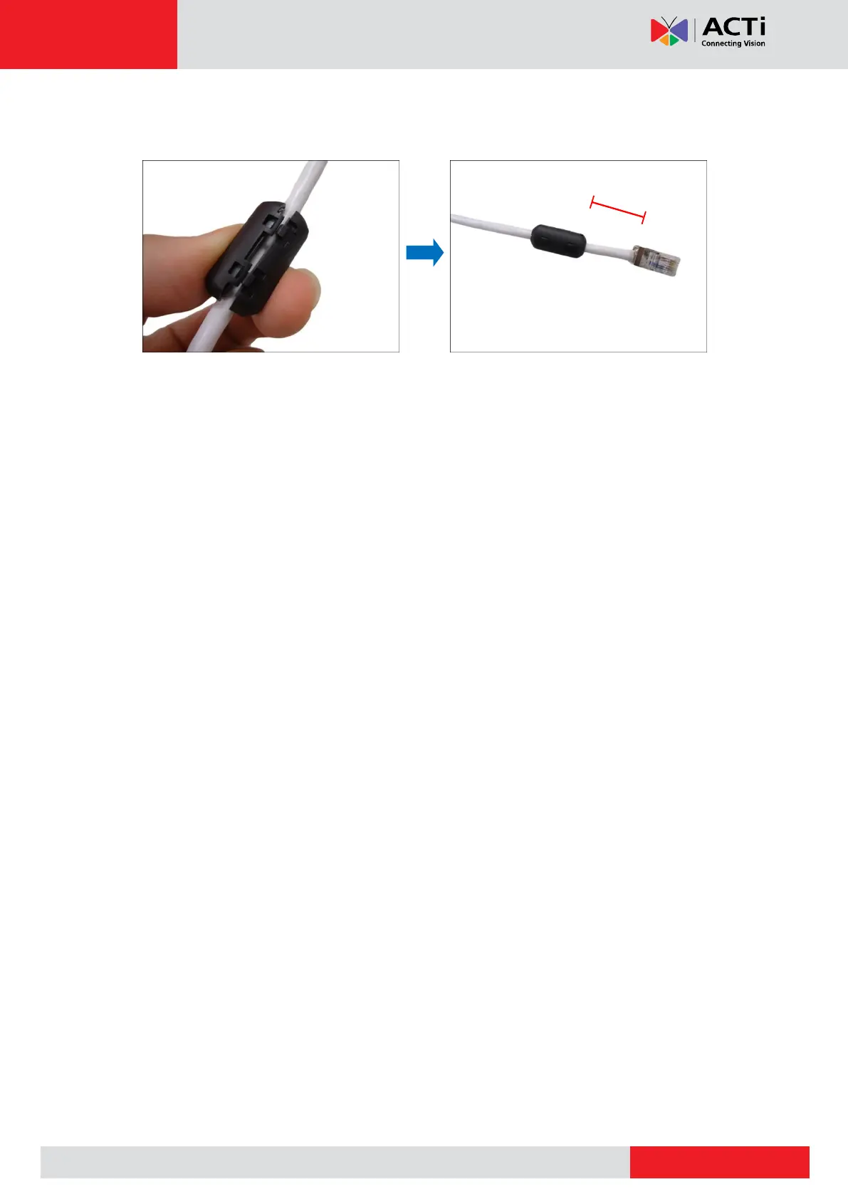 9. Snap the ferrite core back to the cable with a distance of 30 mm from the cable