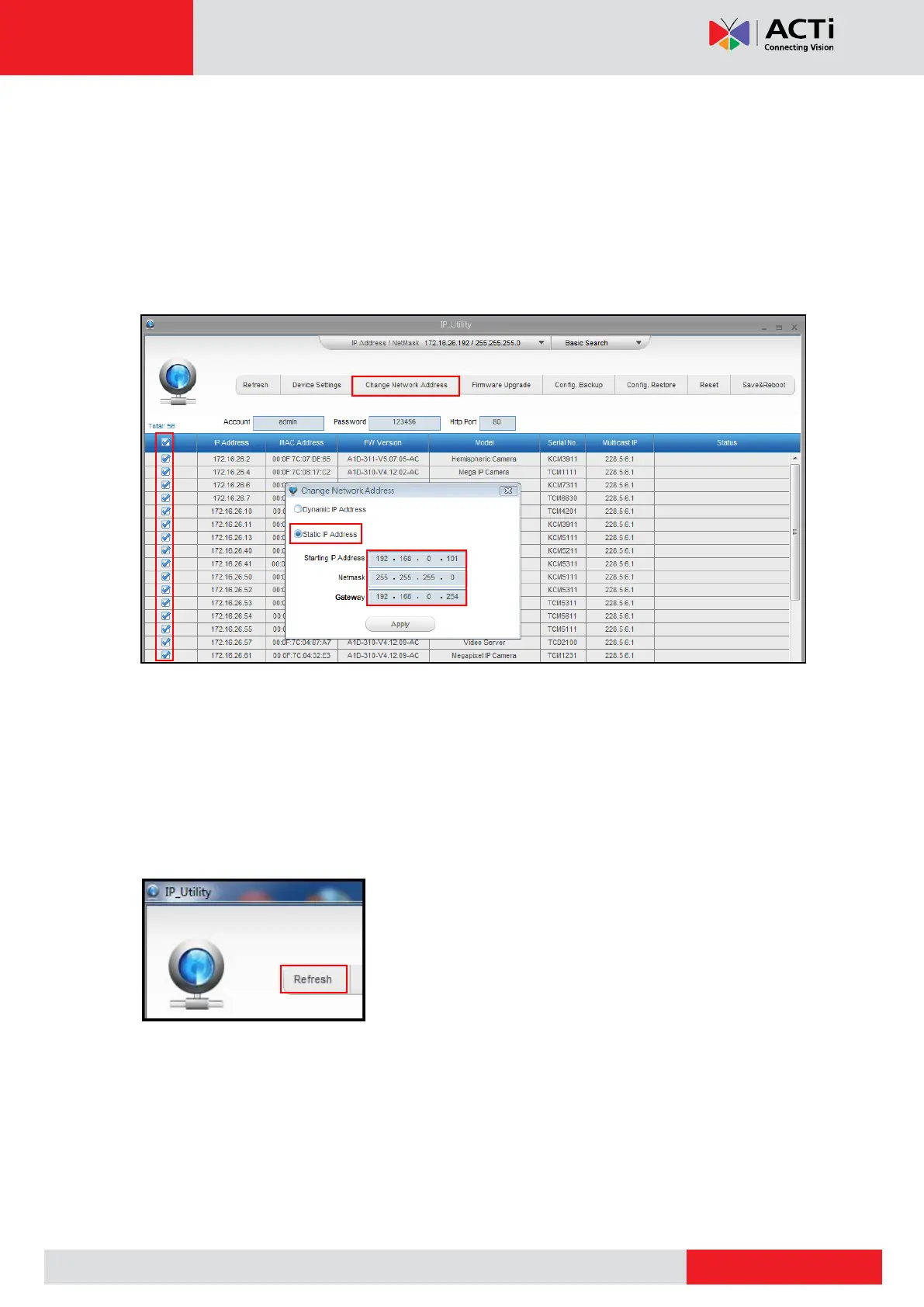 Later, by pressing the “Refresh” button of the IP Utility, you will be able to see the list of