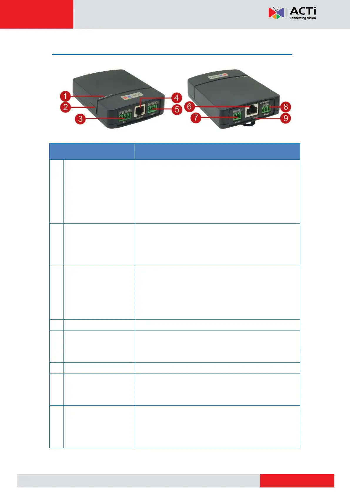 Activity LED (ACT) : Flashes AMBER to indicate network