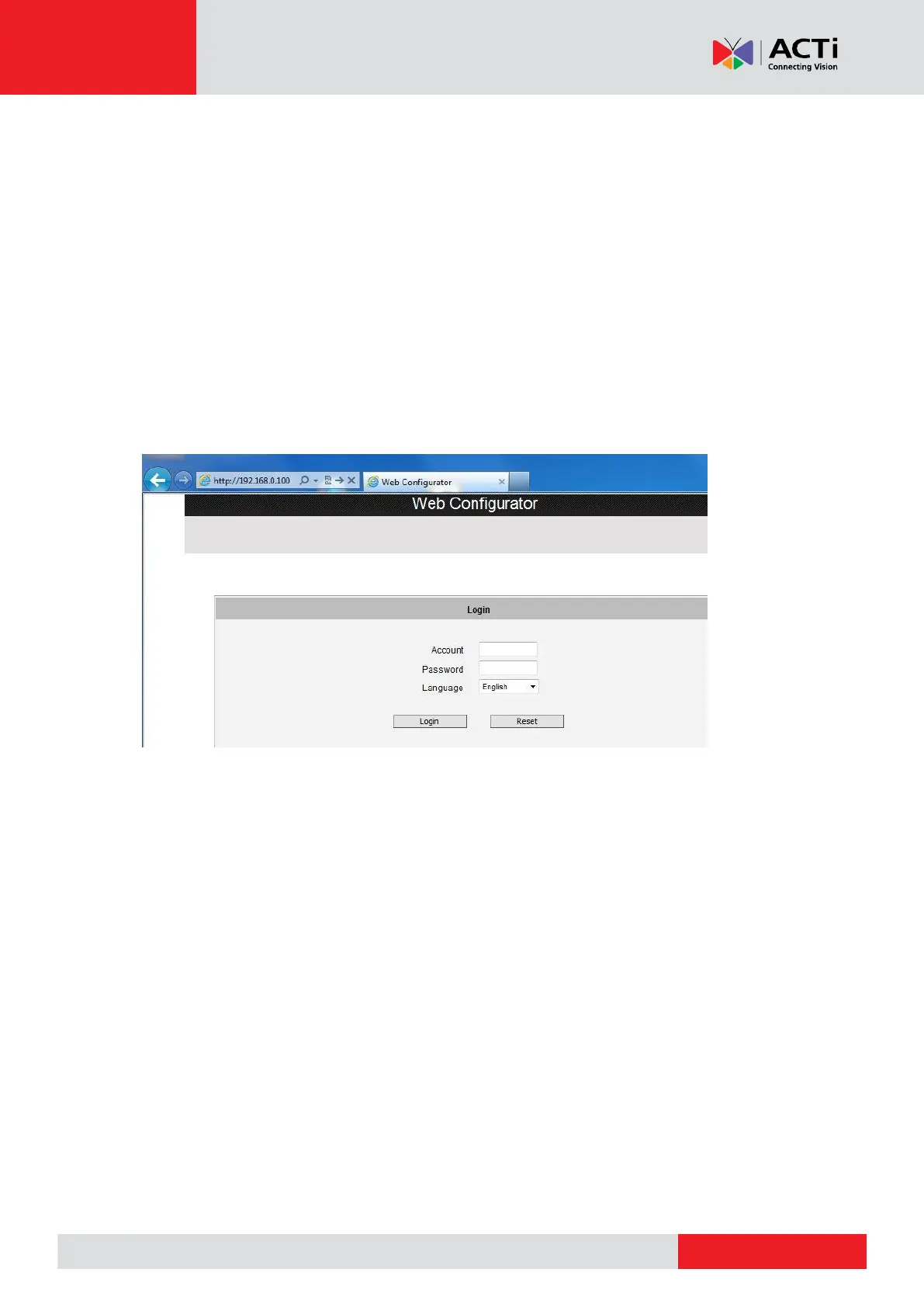 Before logging in, you need to know the factory default Account and Password of the camera.