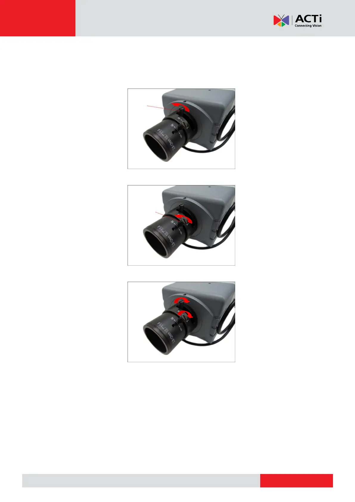 The camera comes with the focus and viewing angle already fixed. If necessary, do the following