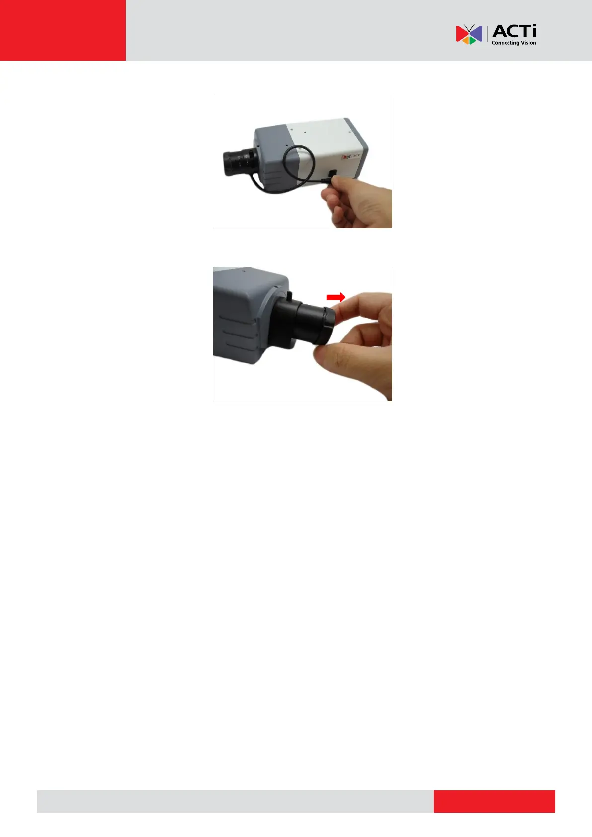 4. For lens with DC-iris, connect the lens cable to the DC-iris port of the camera.
