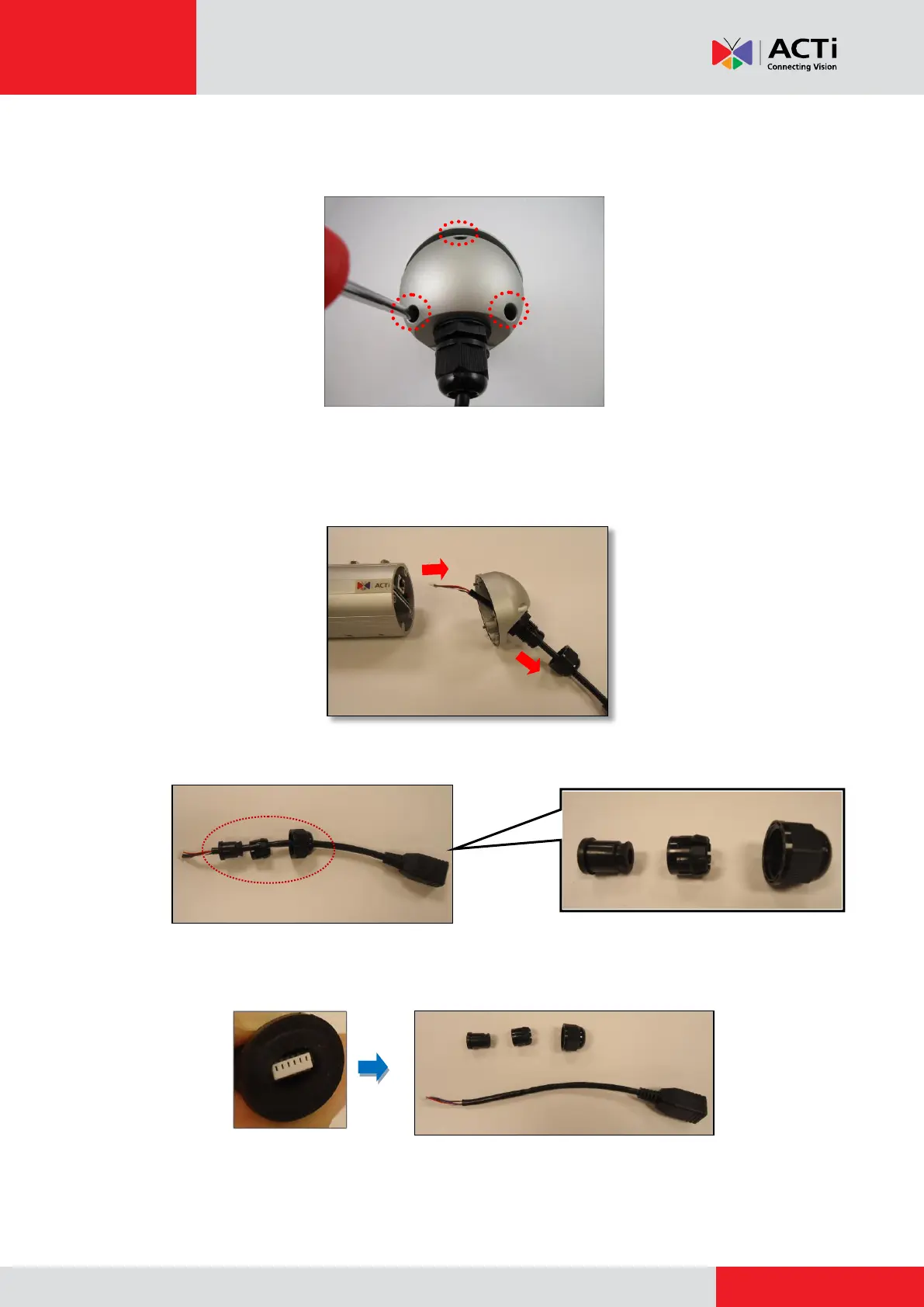 3. Pull out the network cable from the back cover and disassemble the parts as marked below.
