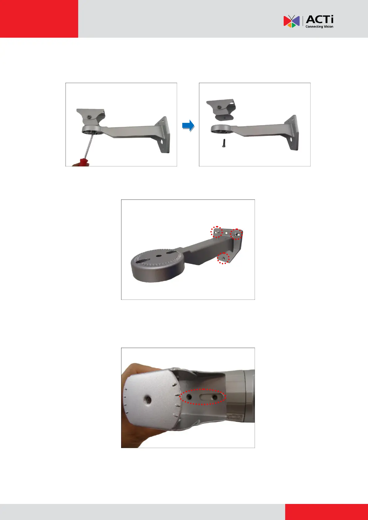 3. Align the screw holes of the holder to the bottom screw holes of the camera.