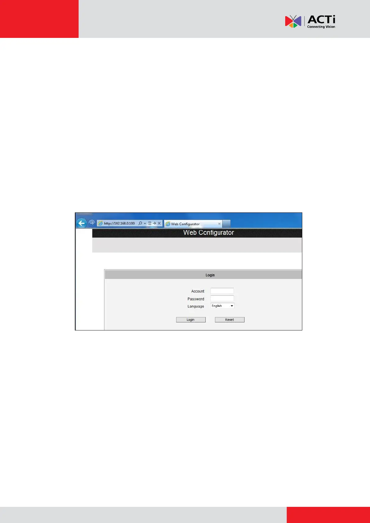 Assuming that the camera’s IP address is 192.168.0.100, you can access it by opening the Web