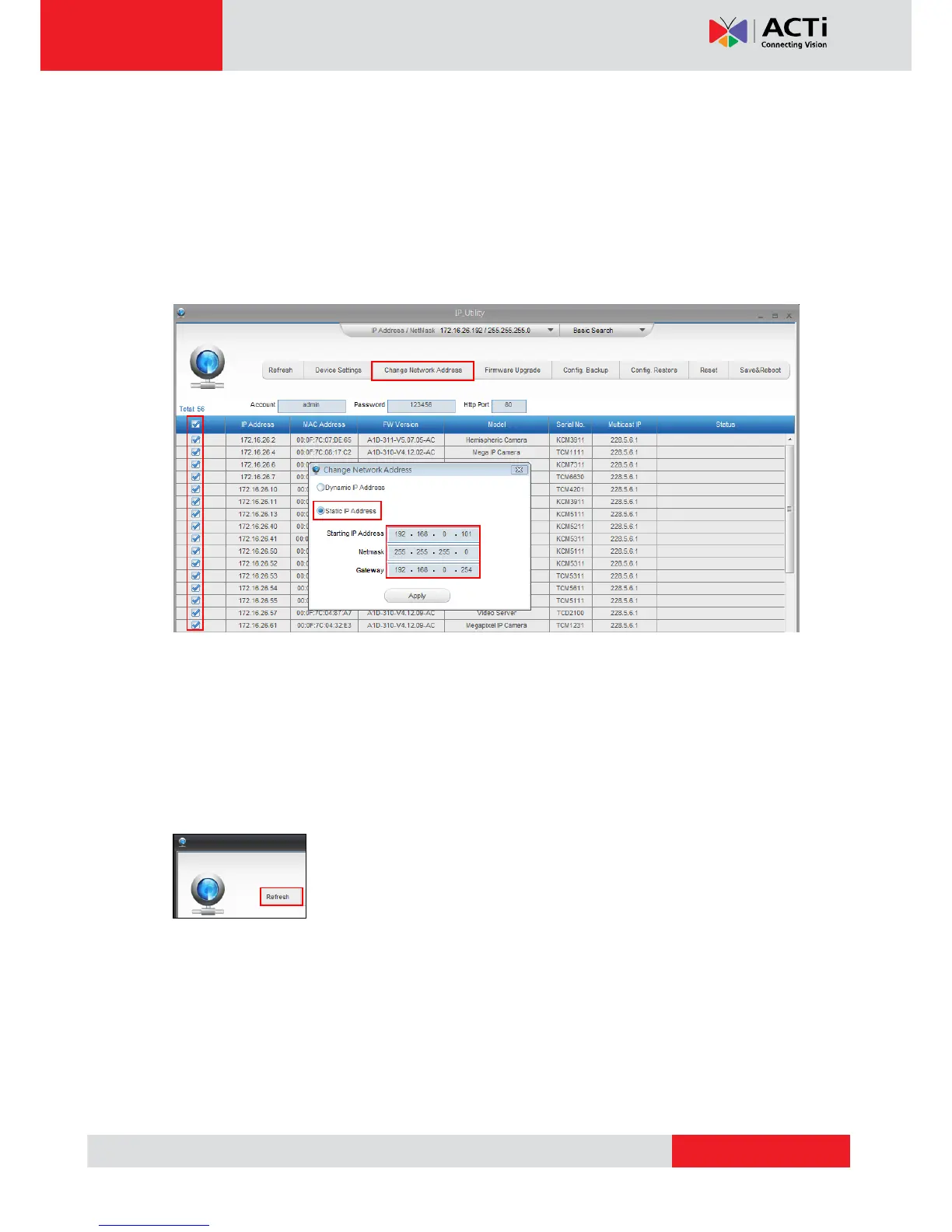 Later, by pressing the “Refresh” button of the IP Utility, you will be able to see the list of
