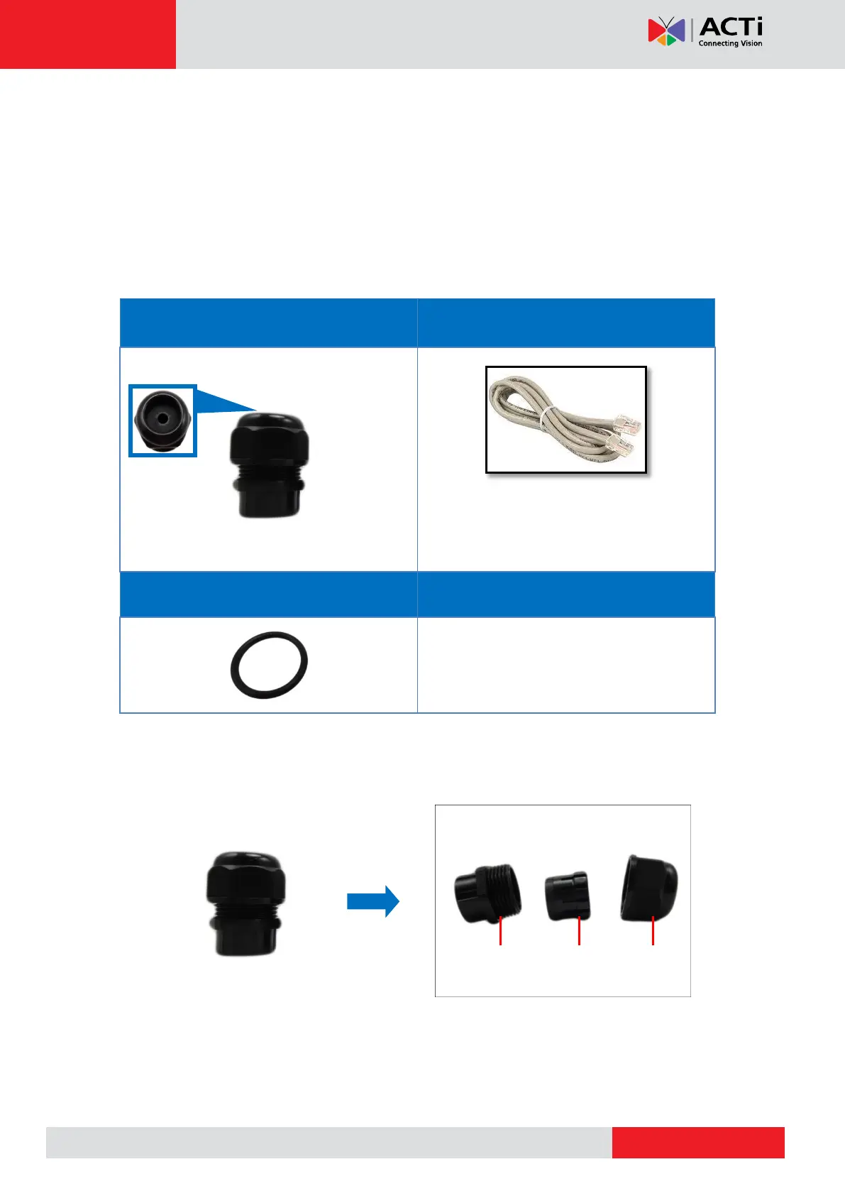 bundled cable gland. An exterior-grade Ethernet cable is required. The camera may or may not
