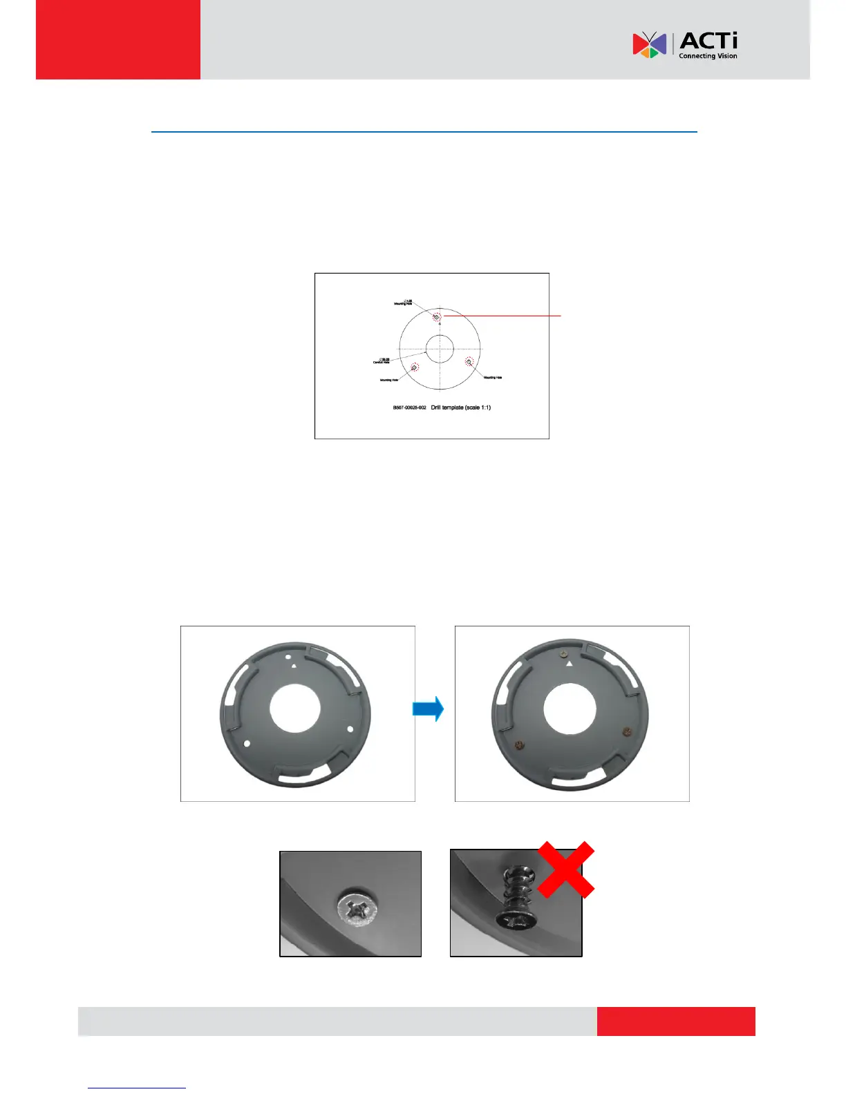 the drill template and mounting plate align with the direction of the camera logo. Rotate the drill