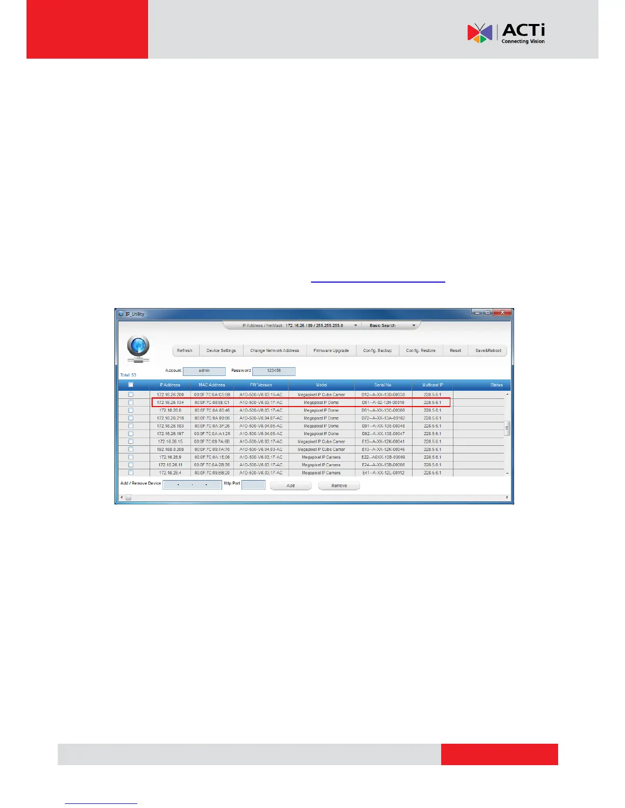 The IP Utility can be downloaded for free from http://www.acti.com/IP_Utility