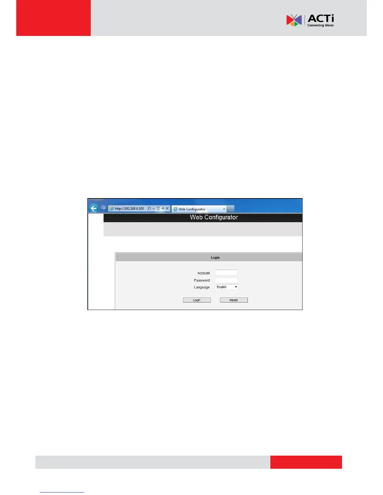 Assuming that the camera’s IP address is 192.168.0.100, you can access it by opening the Web