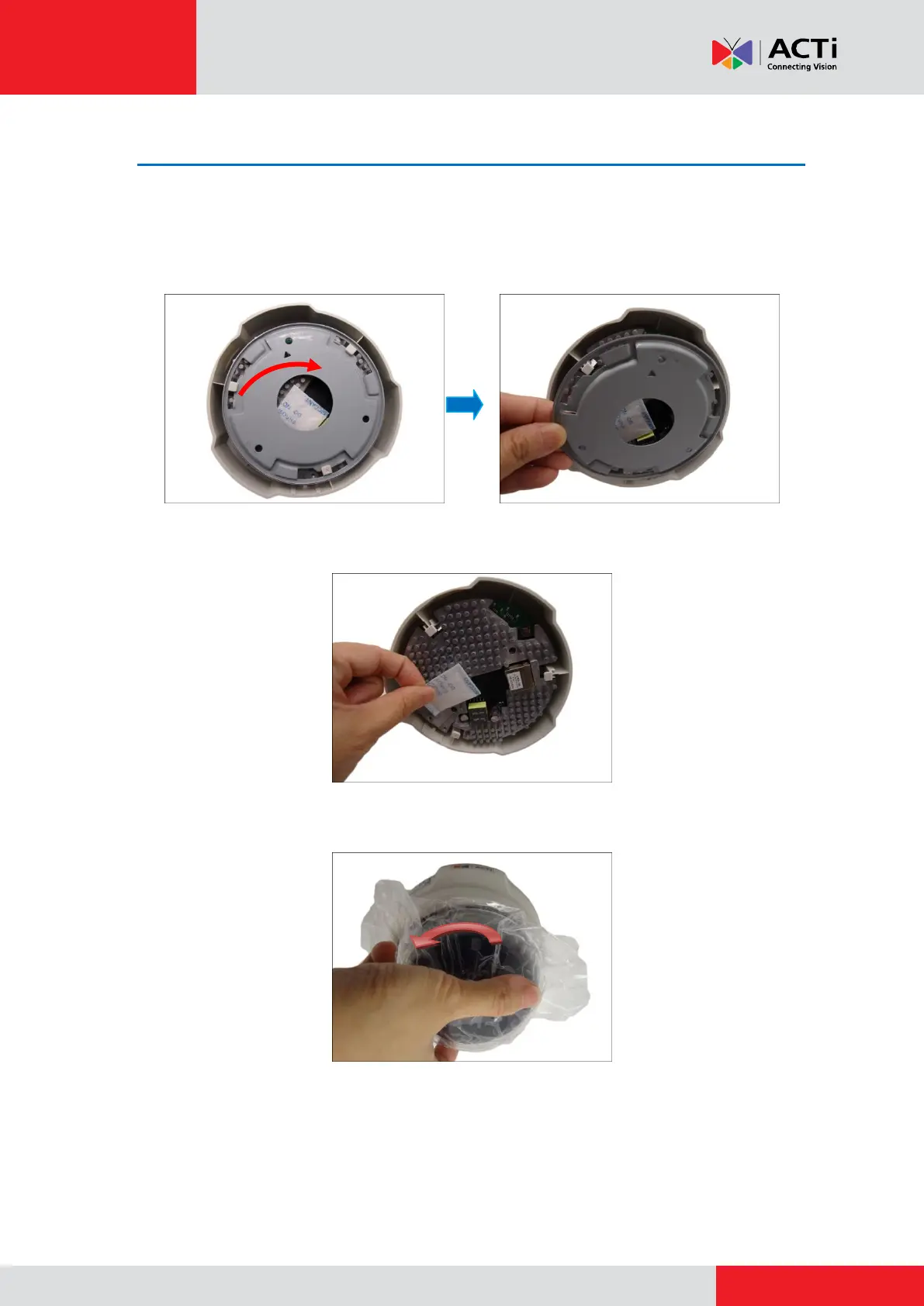 3. Slide the dome cover counter-clockwise to remove the cover from the camera.