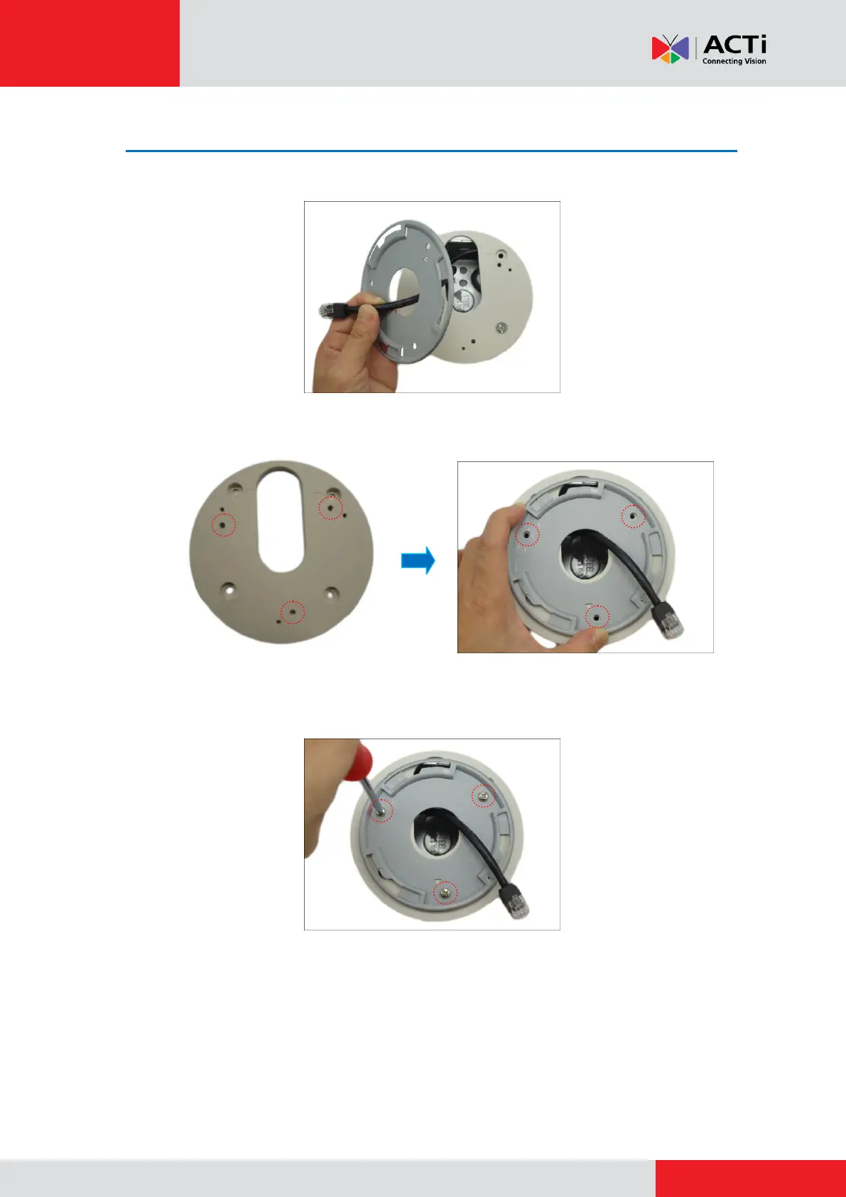 1. Route the network cable through the cable hole of the mounting plate.
