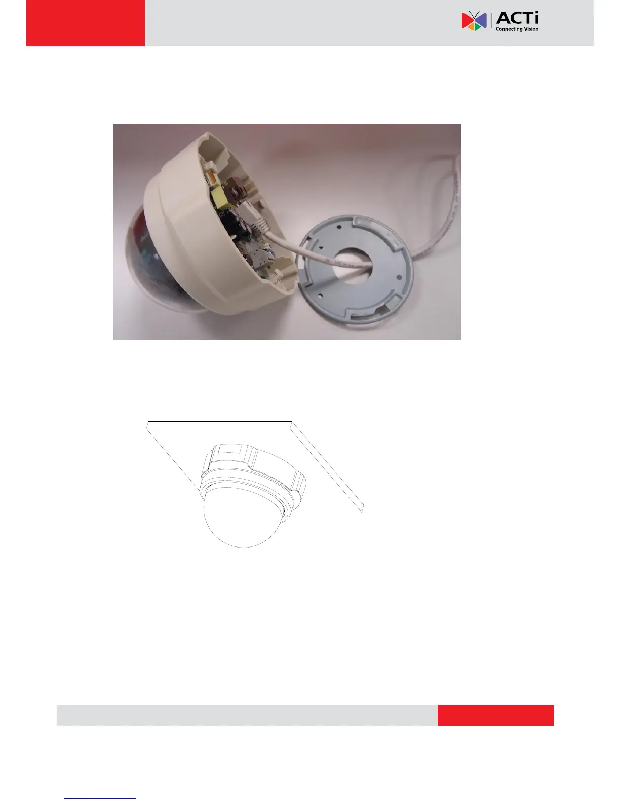 Insert the cables (Network) through the mounting plate and connect to the camera. Then use