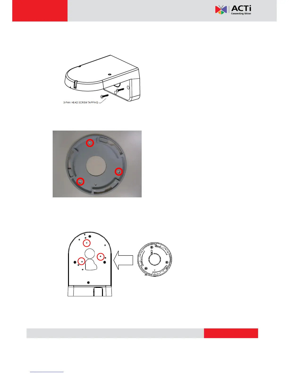 Tighten wall mount bracket to the wall by 3 PAN Head Tapping screws