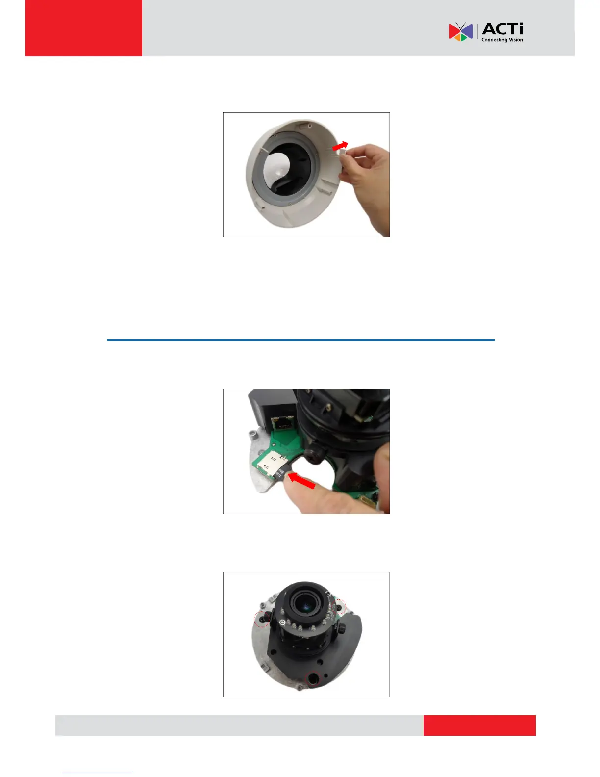 2. Align the camera screw holes and the cable hole (if necessary) to the holes on the surface