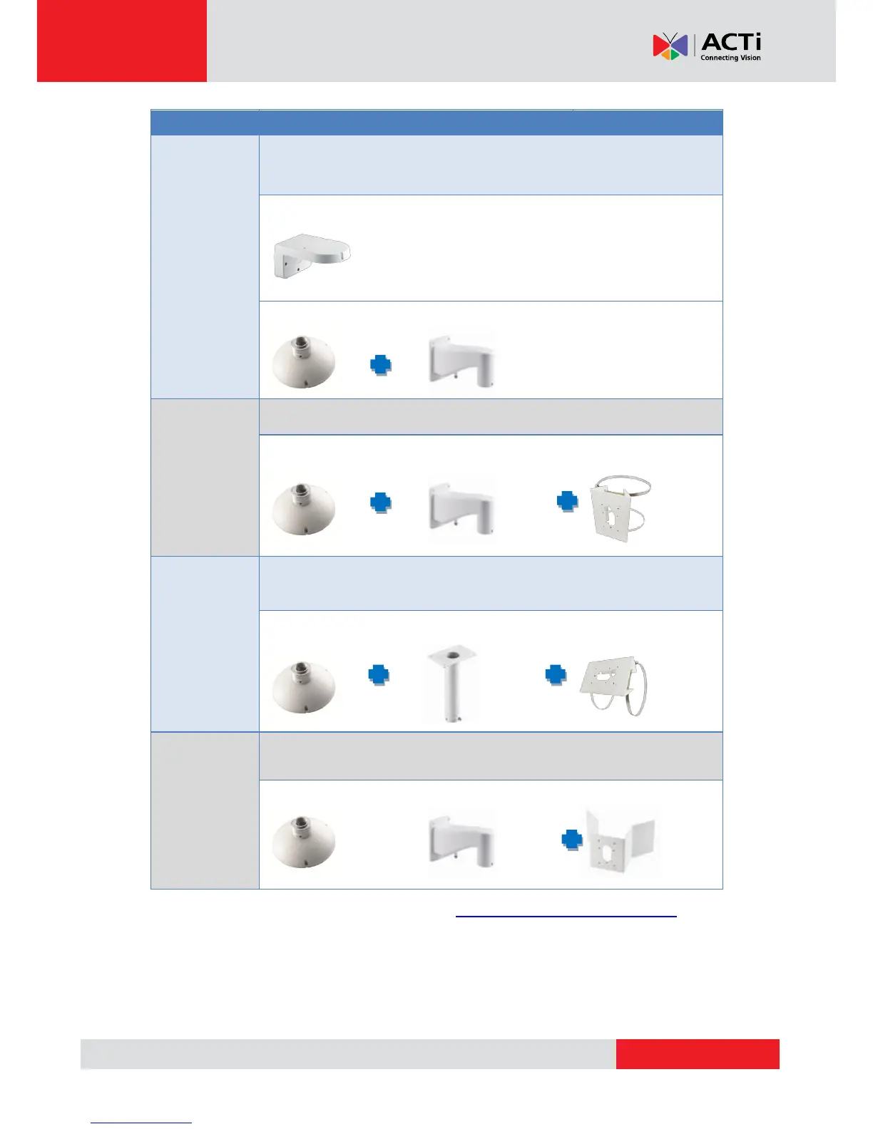 NOTE: More options are available in our website (http://www.acti.com/mountingselector).