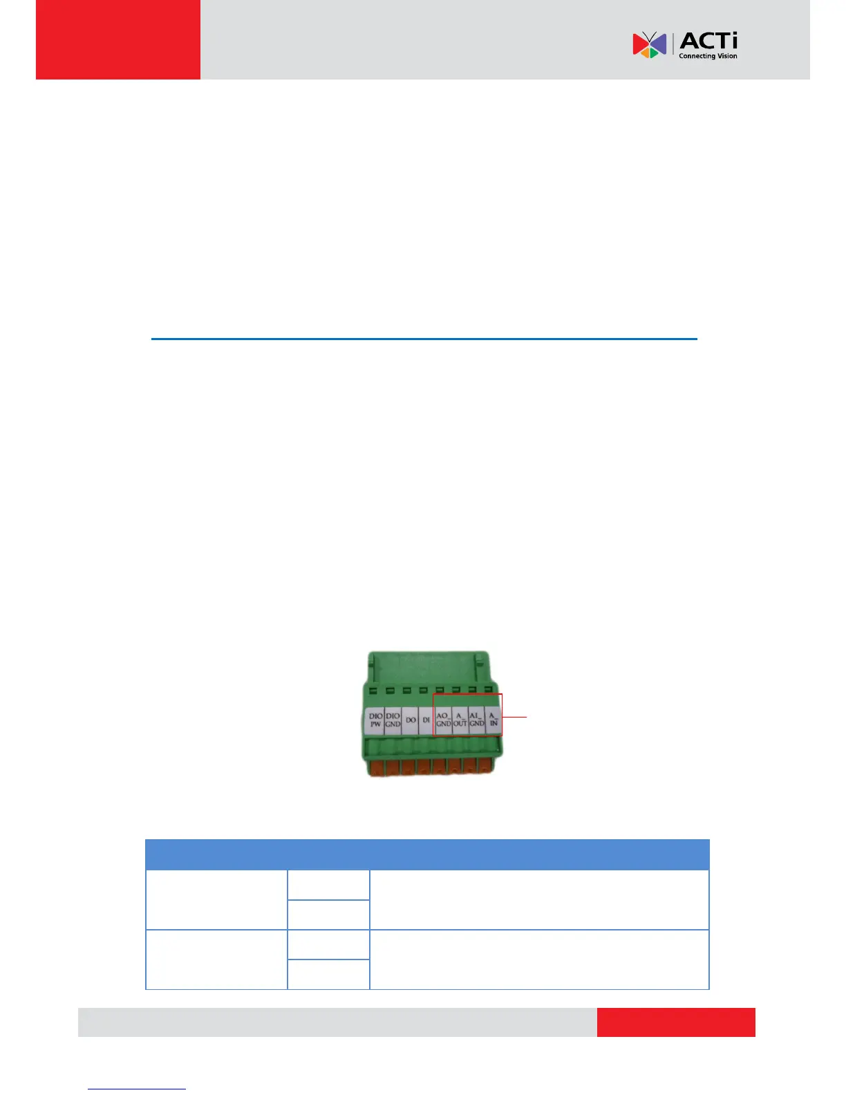 the camera. Depending on your surveillance needs, you may connect digital input (DI) or digital