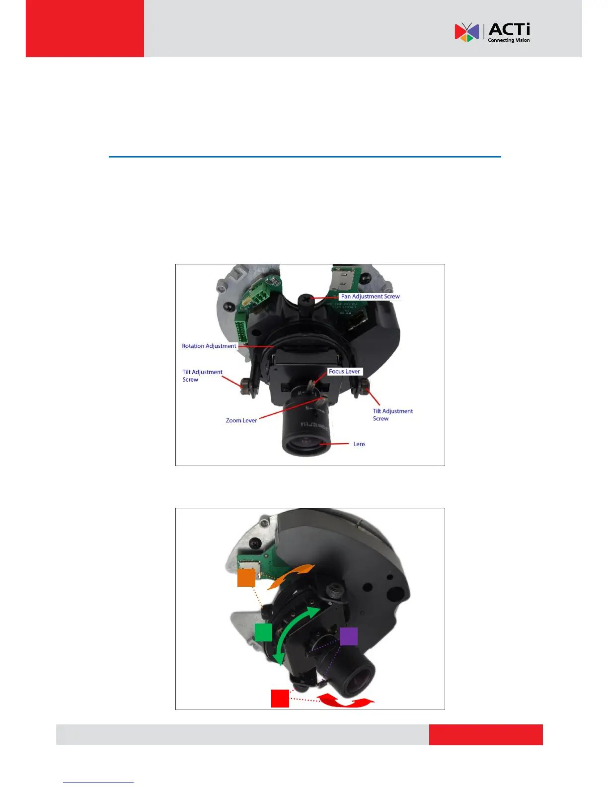 ACTi D61A - Other Adjustments and Accessories; Adjusting Camera Viewing Angle and Focus; D61 A, D62 A Model Adjustment Procedures
