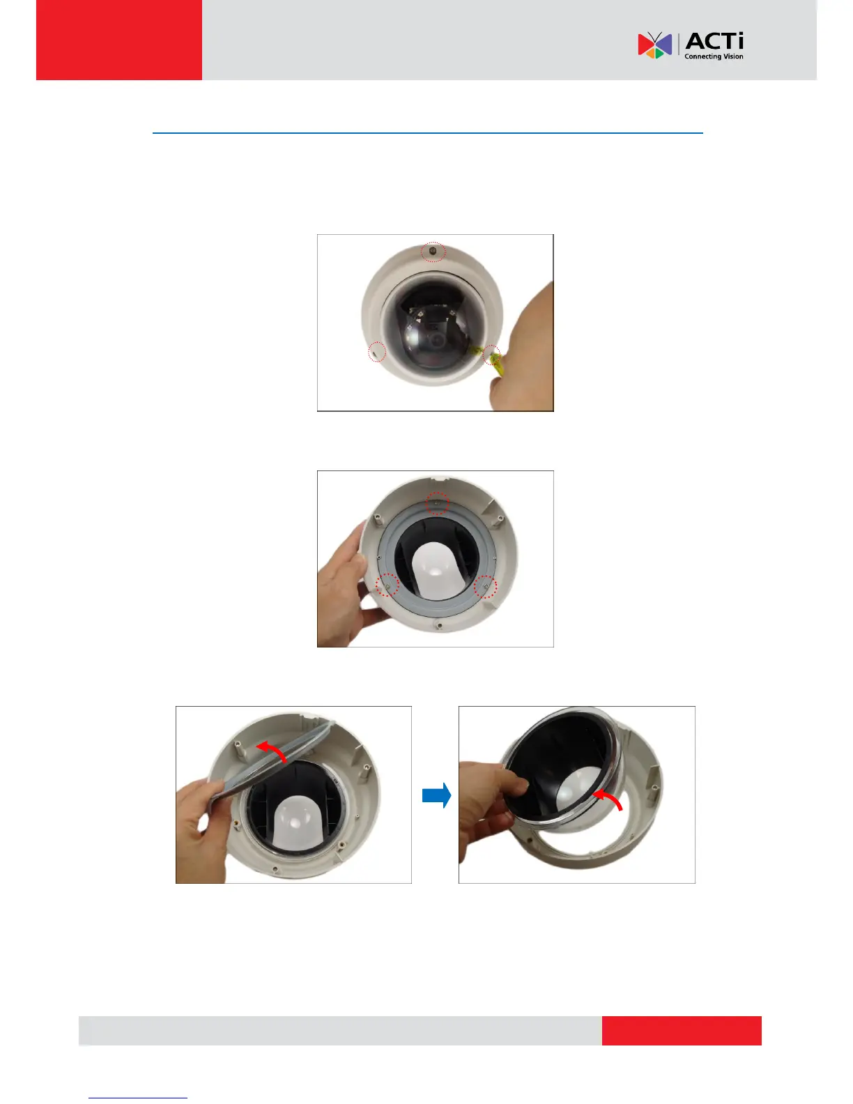 1. Loosen the three (3) screws to open the dome cover.