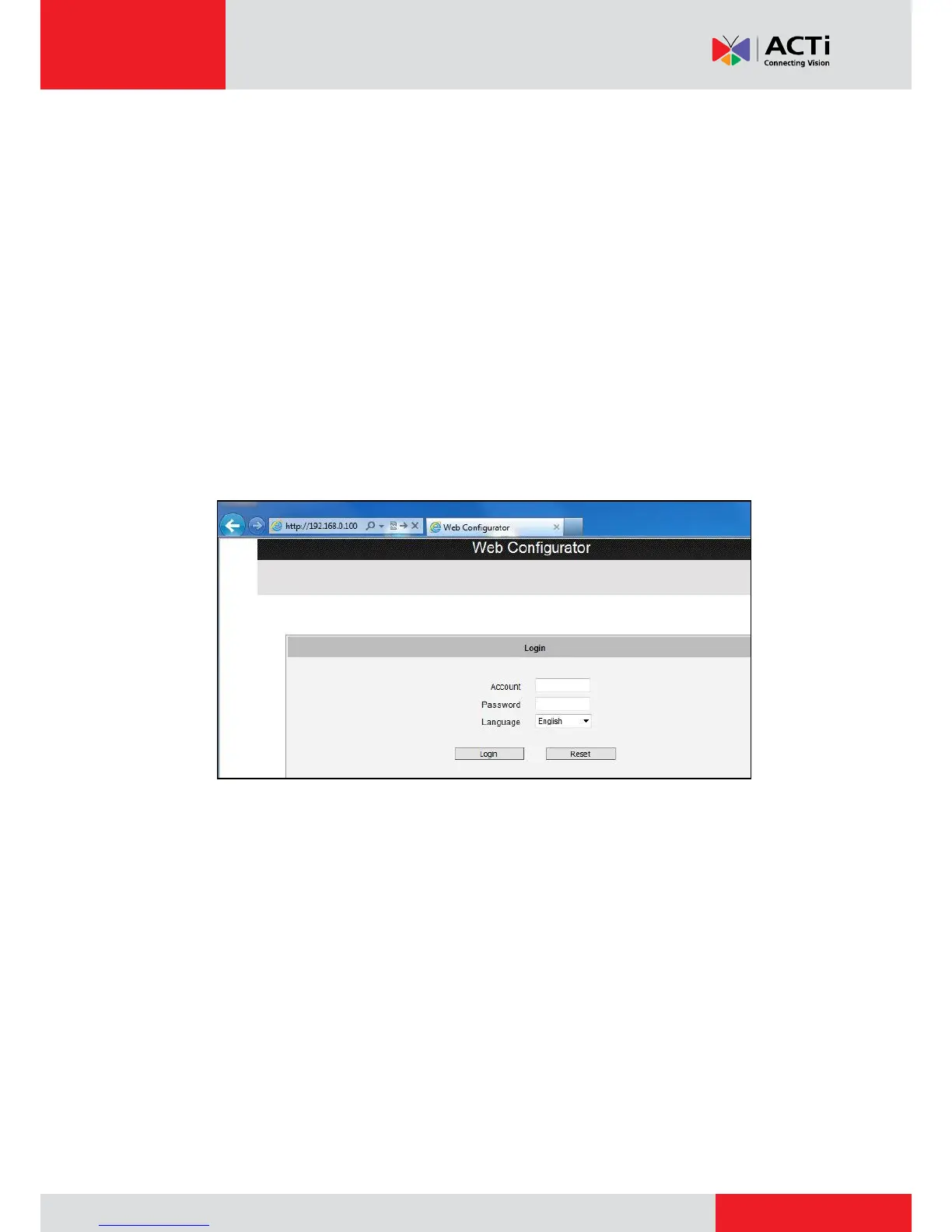 Before logging in, you need to know the factory default Account and Password of the camera.