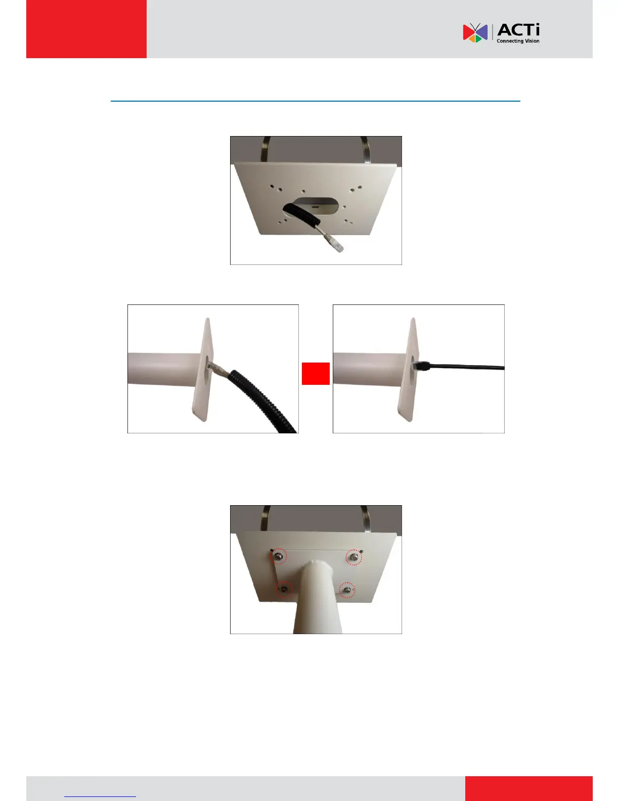 1. Route the flex conduit or network cable through the conduit hole of the Pole Mount.
