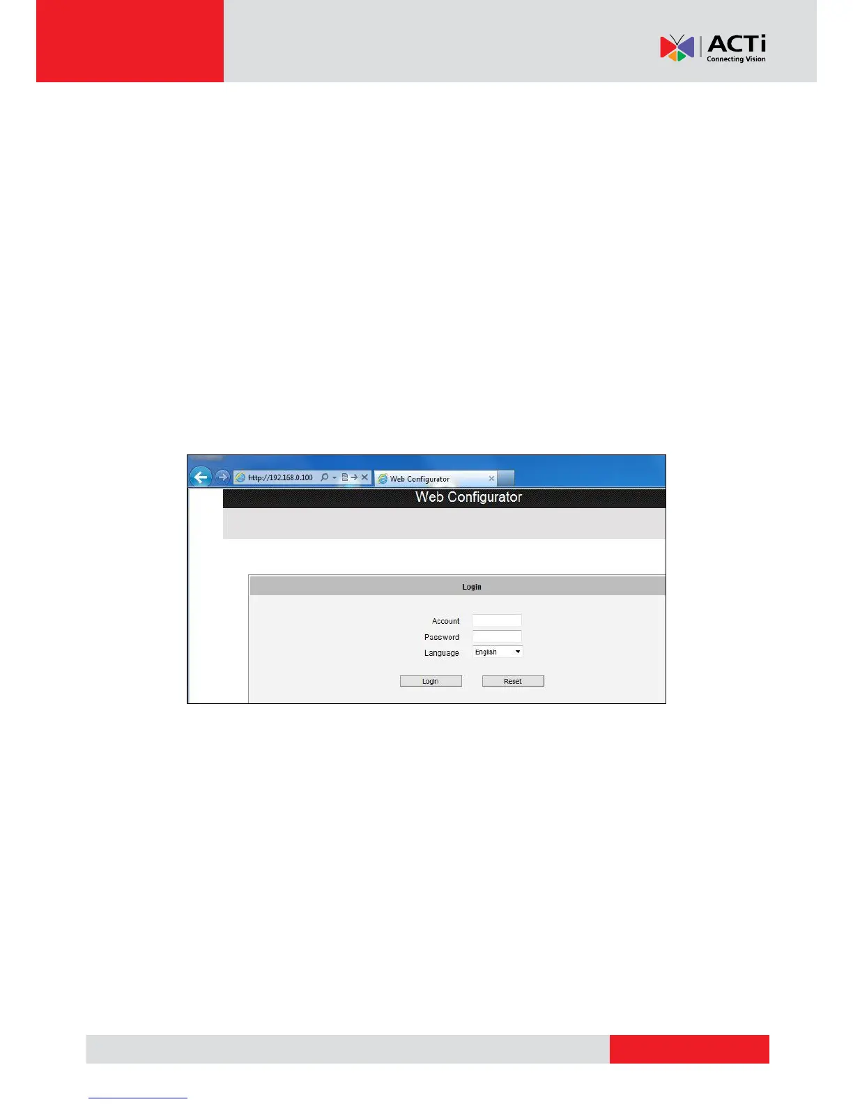 Before logging in, you need to know the factory default Account and Password of the camera.